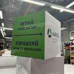 Кубы с логотипами становятся ярким акцентом выставочных стендов и промо-зон. Они легко транспортируются, быстро собираются и неизменно привлекают внимание посетителей. Большие кубы могут служить элементами зонирования пространства.