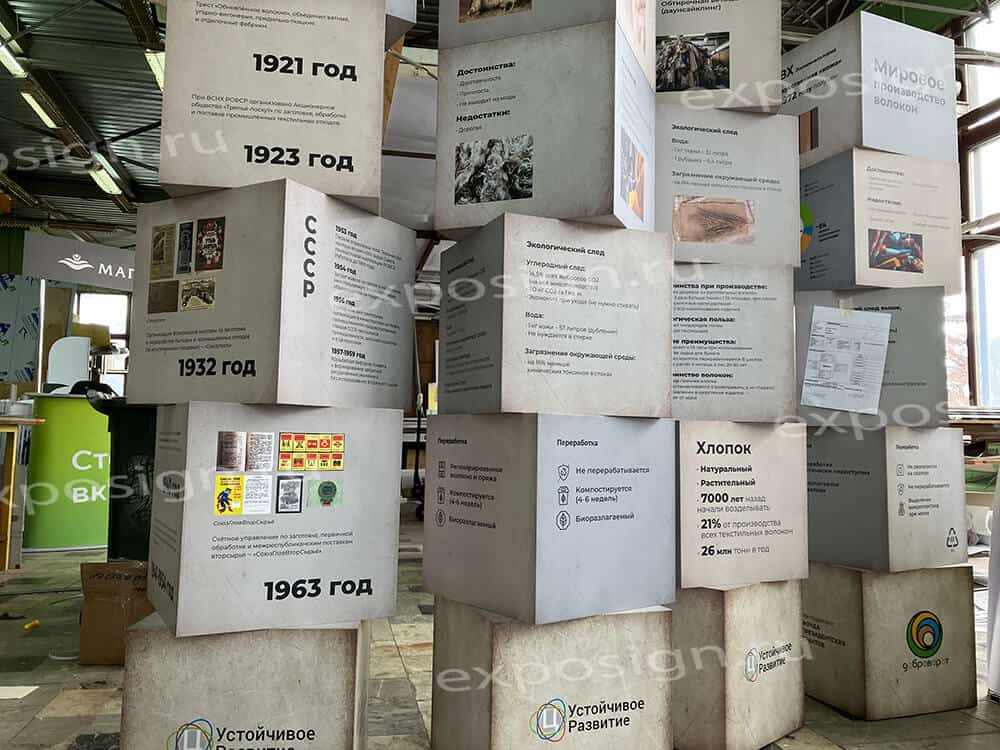 В наличии имеются отдельные изделия и полноценные сборные кубические конструкции. Их приобретение актуально при проведении различных мероприятий рекламного и информационного характера. Они дают возможность решать декоративные арт-задачи.